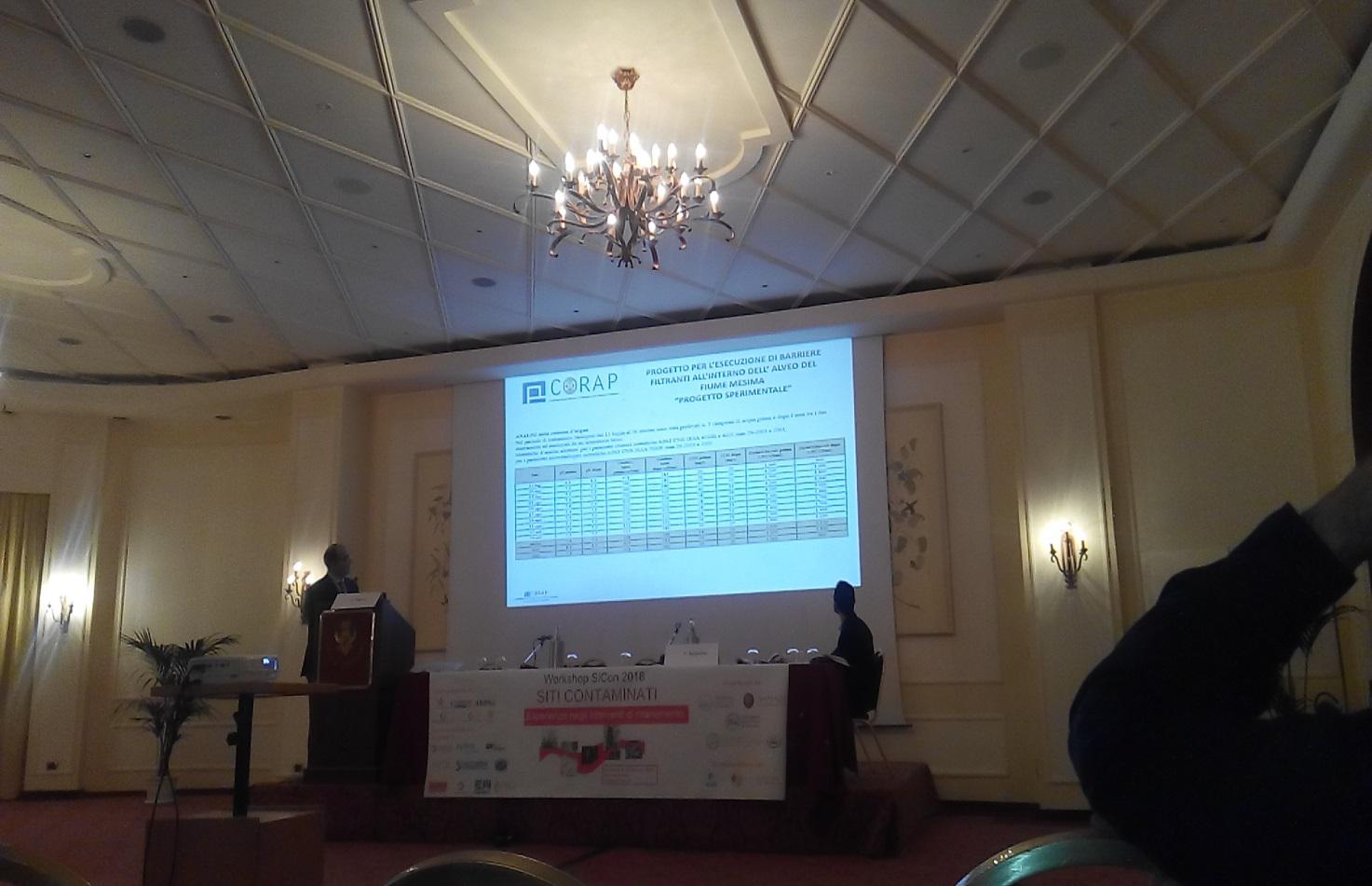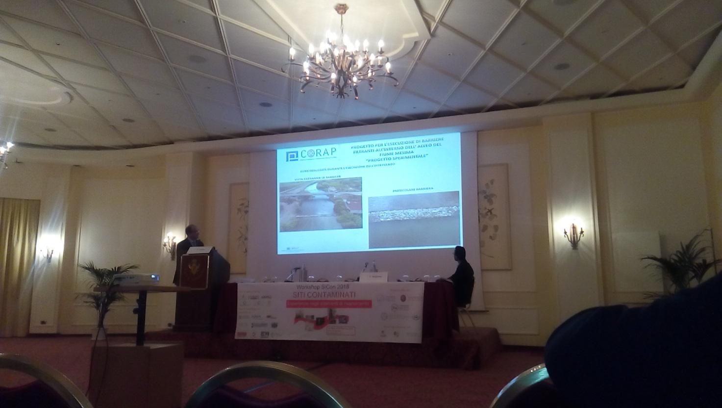 La manifestazione, le cui precedenti edizioni si sono svolte a Roma, Brescia e Taormina, è stata organizzata dai gruppi di Ingegneria Sanitaria-Ambientale di Università degli Studi di Brescia, Università degli Studi di Catania e SAPIENZA Università di Roma in collaborazione con l’ANDIS (Associazione Nazionale di Ingegneria Sanitaria-Ambientale), il GITISA (Gruppo Italiano di Ingegneria Sanitaria-Ambientale) ed il CSISA Onlus (Centro Studi di Ingegneria Sanitaria Ambientale) di Catania. Il SiCon è stata un’occasione di proficuo confronto tra gli operatori del settore ed ha messo a disposizione dei partecipanti un ampio quadro di quanto è stato ad oggi realizzato nel campo delle bonifiche, con specifico risalto agli aspetti tecnico-operativi. Nel corso della Sessione di Studio n.2 su “Suoli e Acquiferi contaminati” è stato presentato il progetto redatto dal CORAP e riguardante l’ INTERVENTO DI REALIZZAZIONE BARRIERE FILTRANTI ALL’INTERNO DEL FIUME MESIMA ED UTILIZZO DI BIOATTIVATORI A BASE ENZIMATICA (caso di studio n. 6). Il progetto è stato selezionato dal comitato scientifico ed organizzativo del Workshop ed è stato pubblicato nel volume di raccolta degli atti del convegno, a cura dei Professori Maria Rosaria Boni, Carlo Collivignarelli e Federico G.A. Vagliasindi.